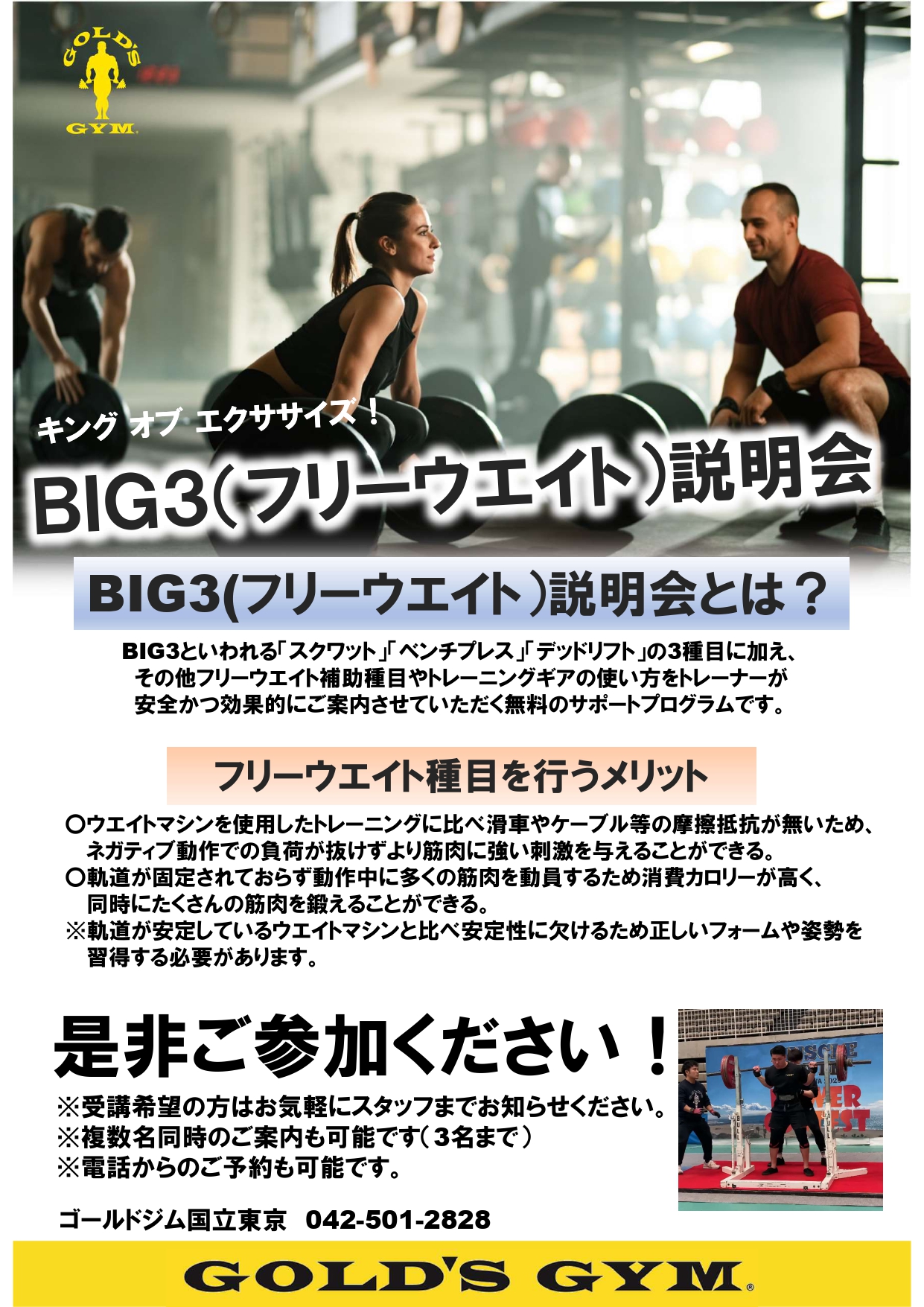 BIG3(フリーウエイト)説明会を実施しております!