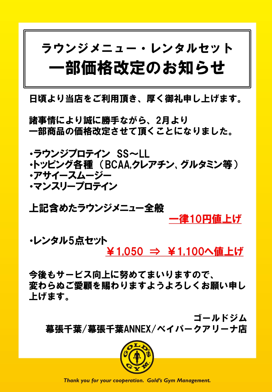 平素よりゴールドジム幕張店をご利用頂きまして誠にありがとうございます。