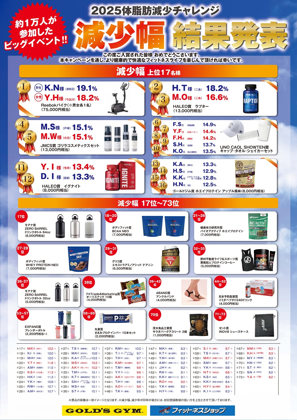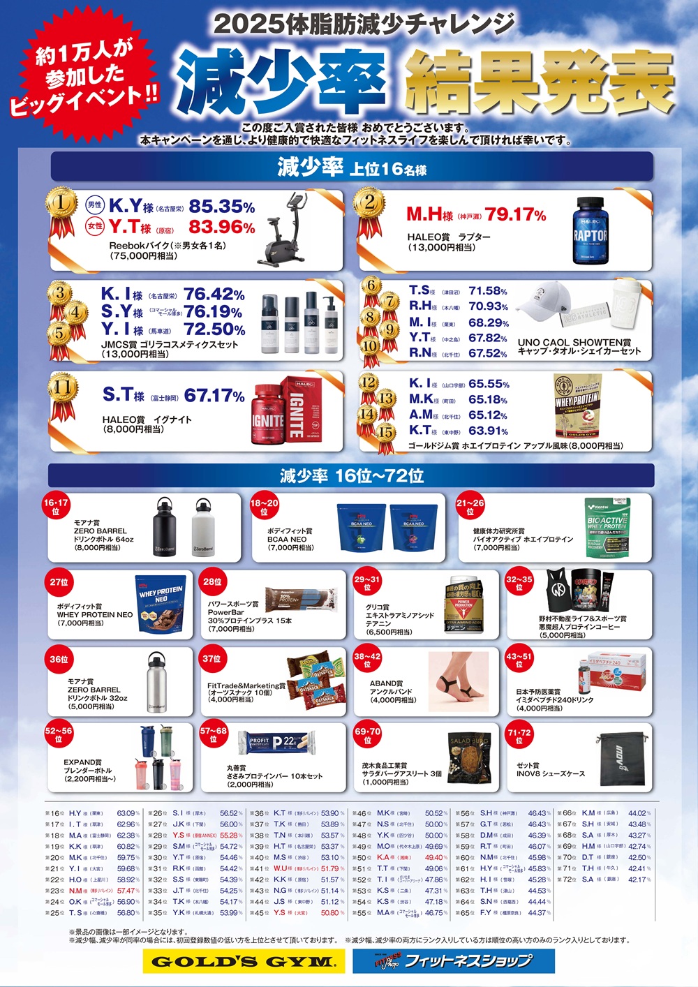 昨年、全国の会員様を対象に実施いたしました「2025 体脂肪減少チャレンジ」につきまして、最終結果をあらためて発表させていただきます。