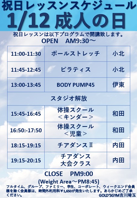 1月12日(祝)祝日レッスンのお知らせ
