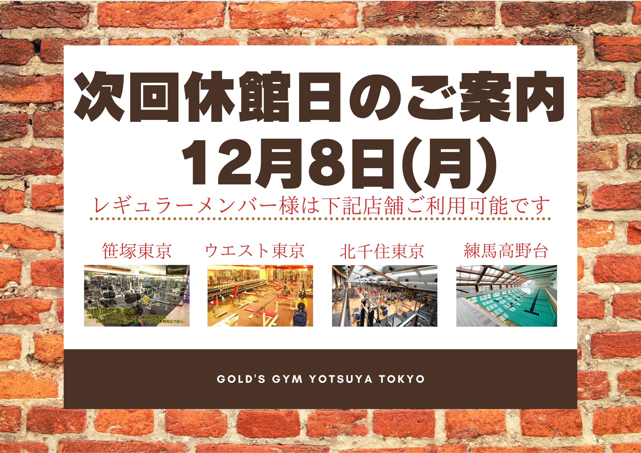 ゴールドジムからのお知らせ