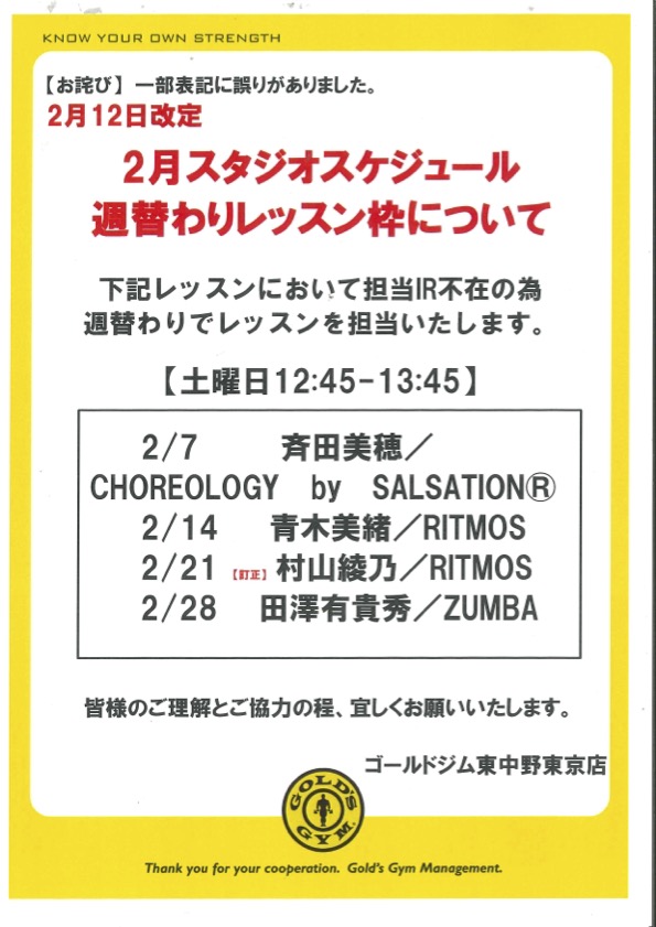 ゴールドジムからのお知らせ