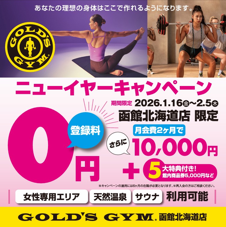・ゴールドジム函館利用時は9:30~23:30まで制限なく無料となります。