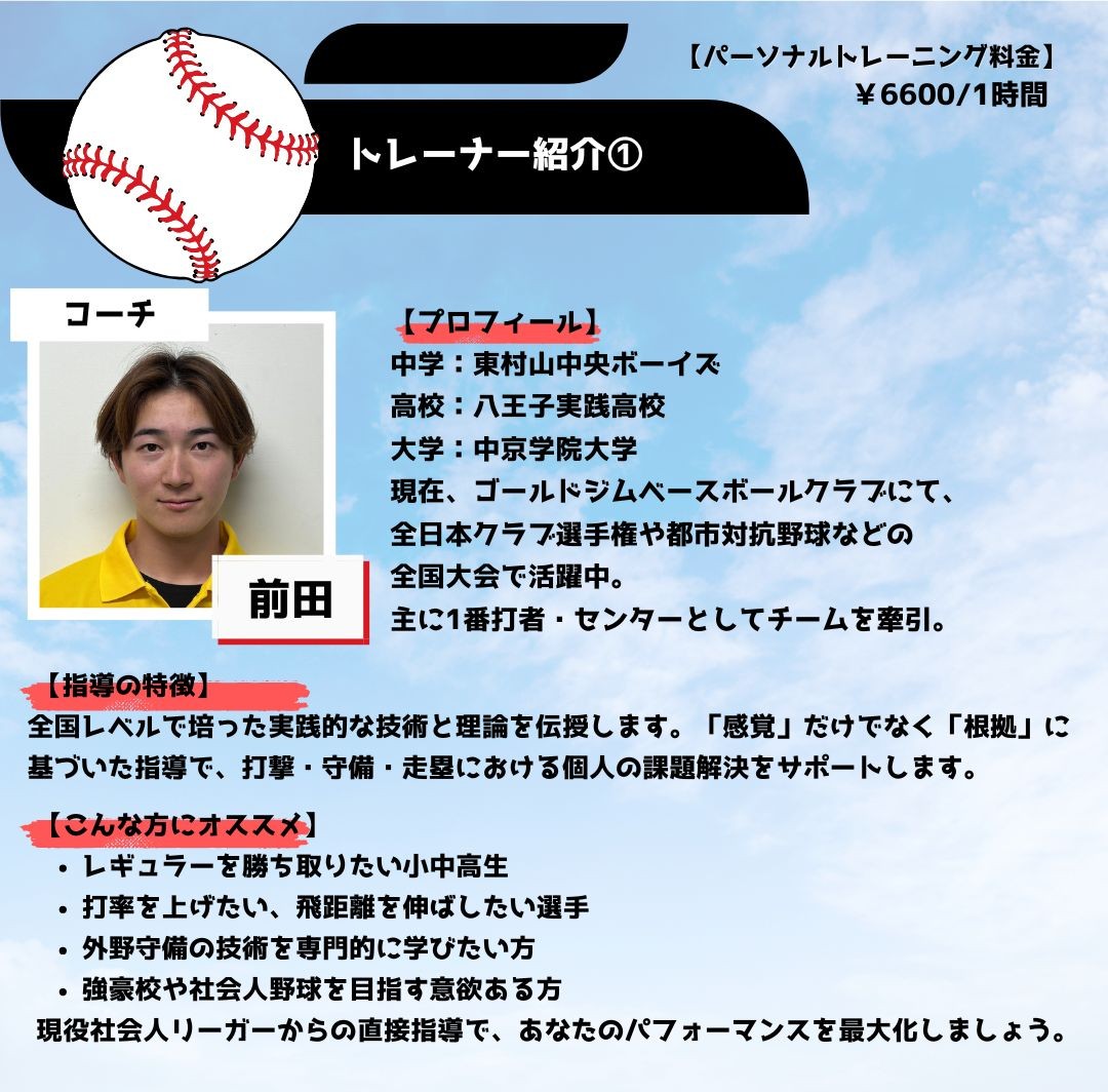 ■ゴールドジム浦安店限定 野球パーソナルトレーニング