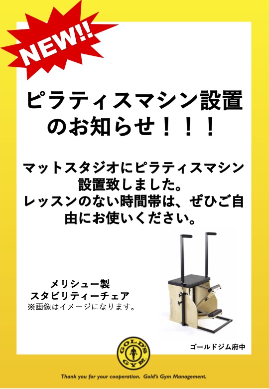 【ピラティスマシン設置のお知らせ!】|府中東京