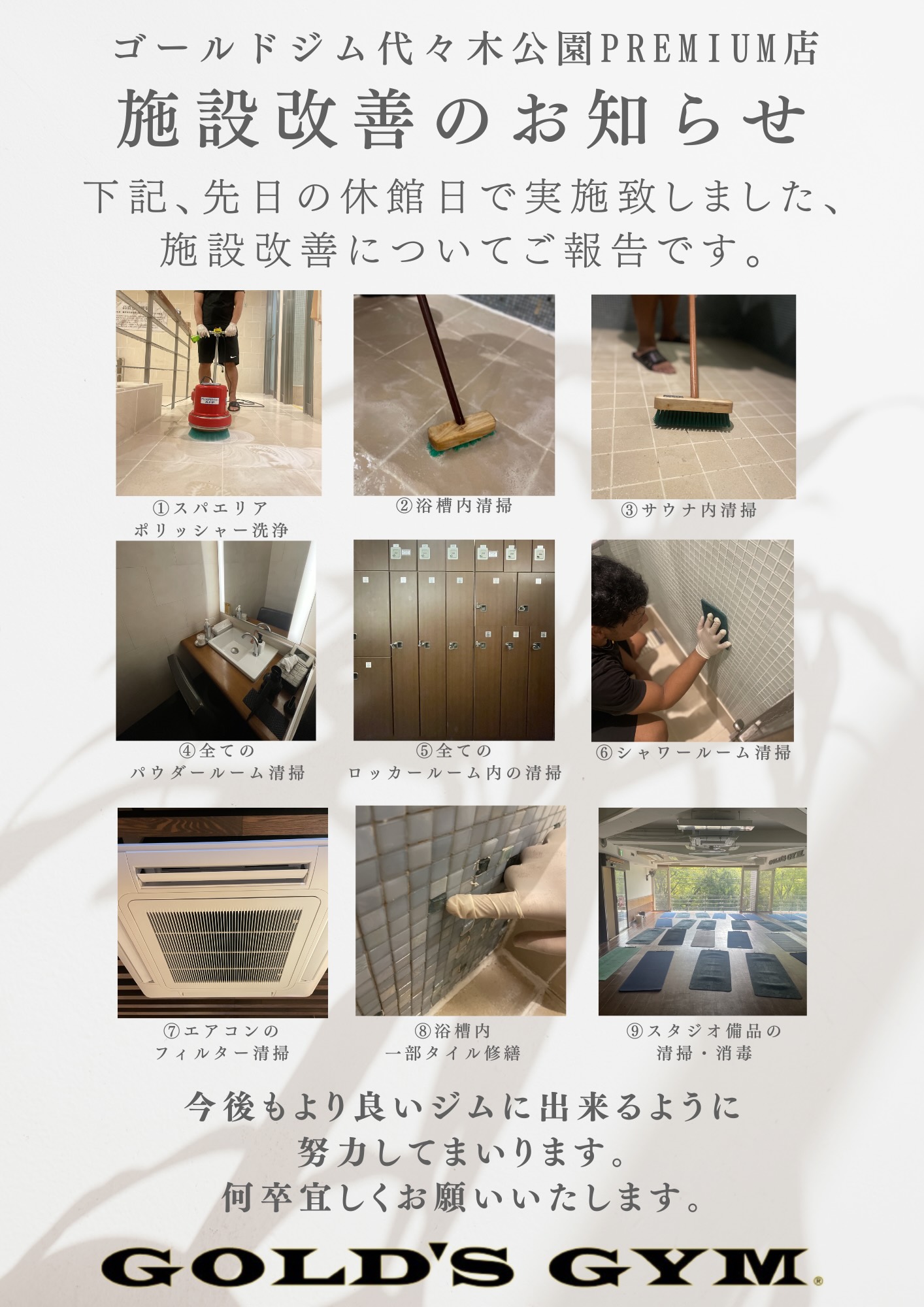 2025年9月度休館日施設改善報告| 代々木公園PREMIUM