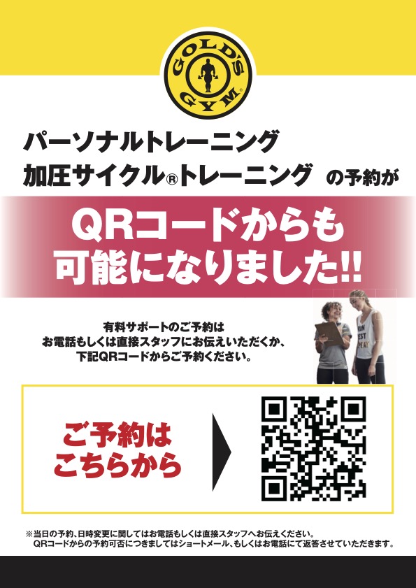 パーソナルトレーニング・加圧サイクル®トレーニング予約が下記URLから可能です。