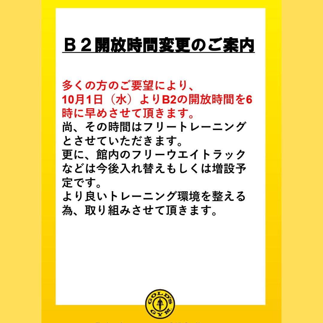 10月1日(水)よりB2Fの開放時間を【午前6時】に早めさせていただきます。