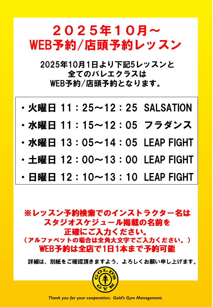 【2025年10月~スタジオレッスンWEBオンライン予約・店頭予約について】