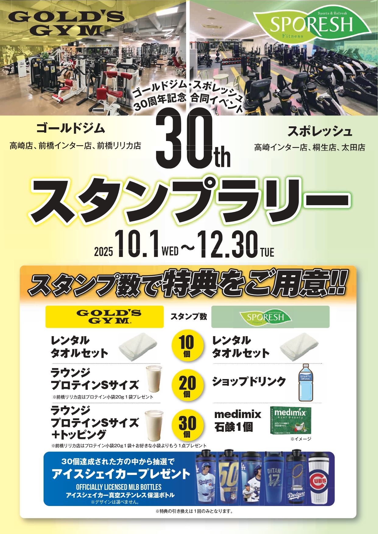 スタンプラリー|ゴールドジム・スポレッシュ30周年記念 合同イベント|高崎群馬・前橋インター・前橋リリカ
