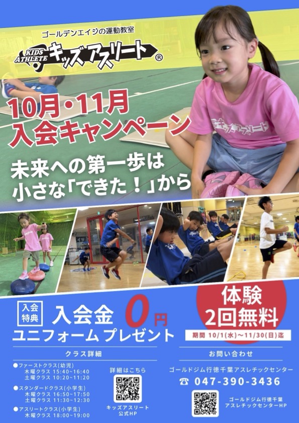 キッズアスリート秋の入会キャンペーン|行徳千葉フィットネスセンター・行徳千葉アスレチックセンター