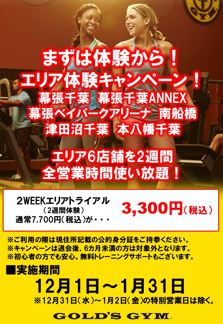 エリア2WEEKSトライアルのご案内|南船橋千葉・本八幡千葉・津田沼千葉・幕張千葉・幕張千葉ANNEX・幕張ベイパークアリーナ