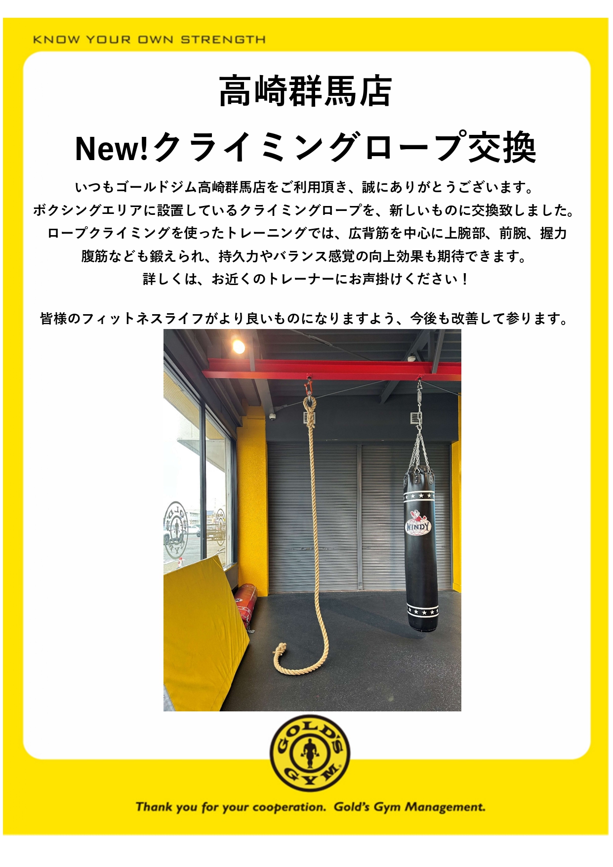 クライミングロープ新品交換・格闘技エリアのご案内|高崎群馬