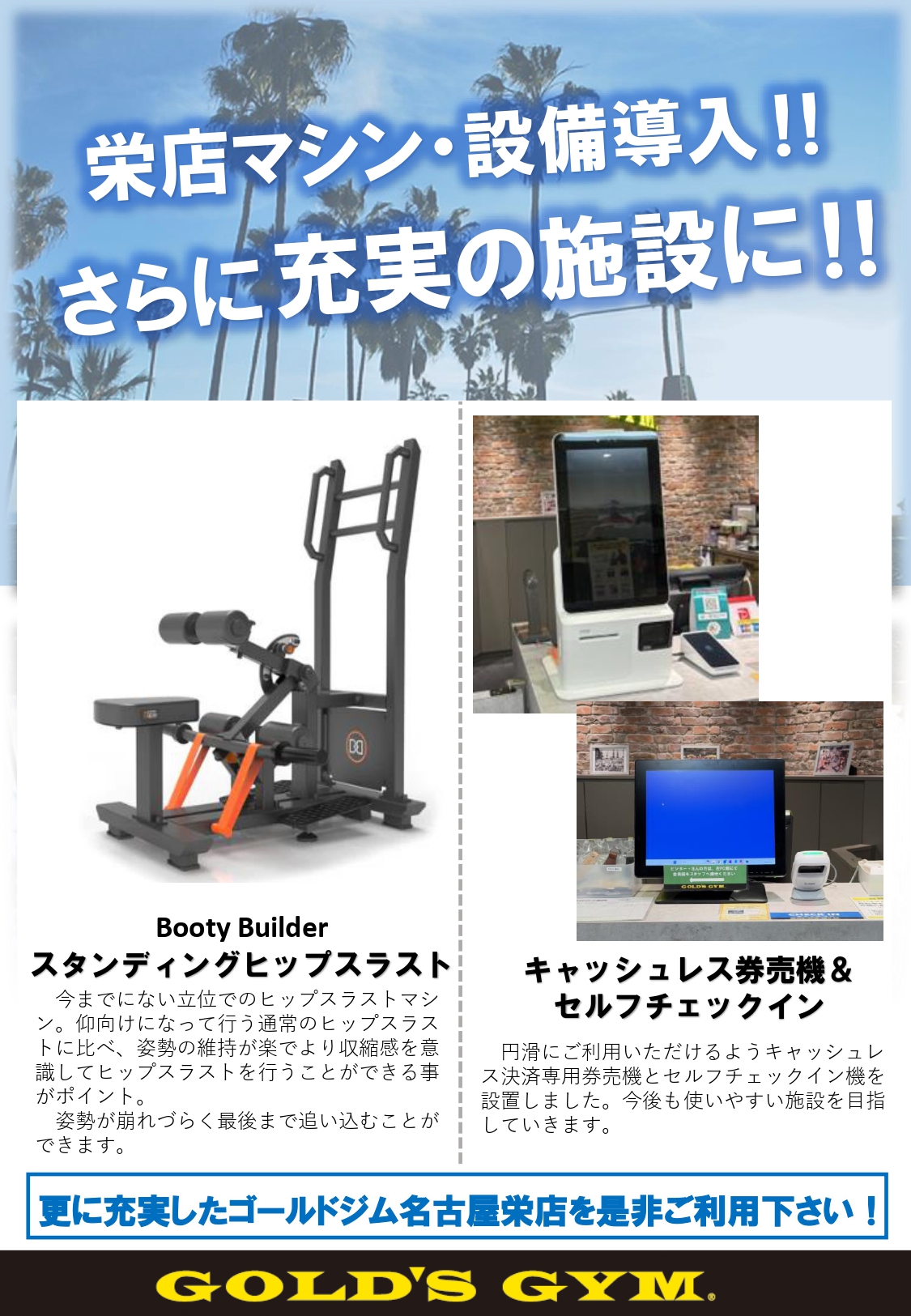 この度、ゴールドジム名古屋栄店は新しい設備導入と、