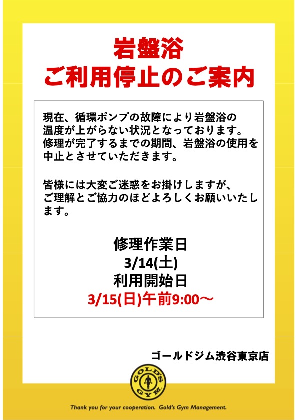 ゴールドジムからのお知らせ