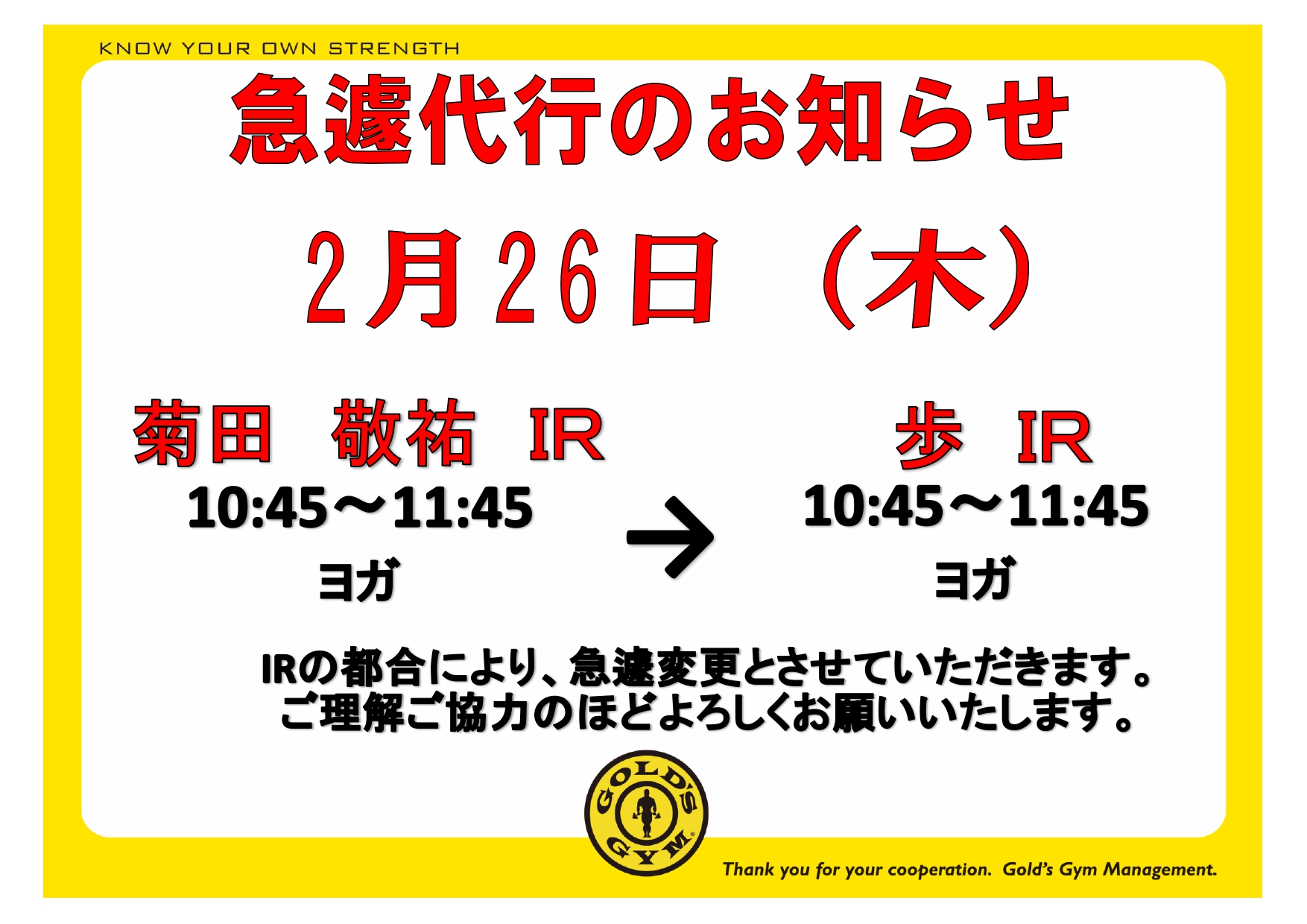 ゴールドジムからのお知らせ