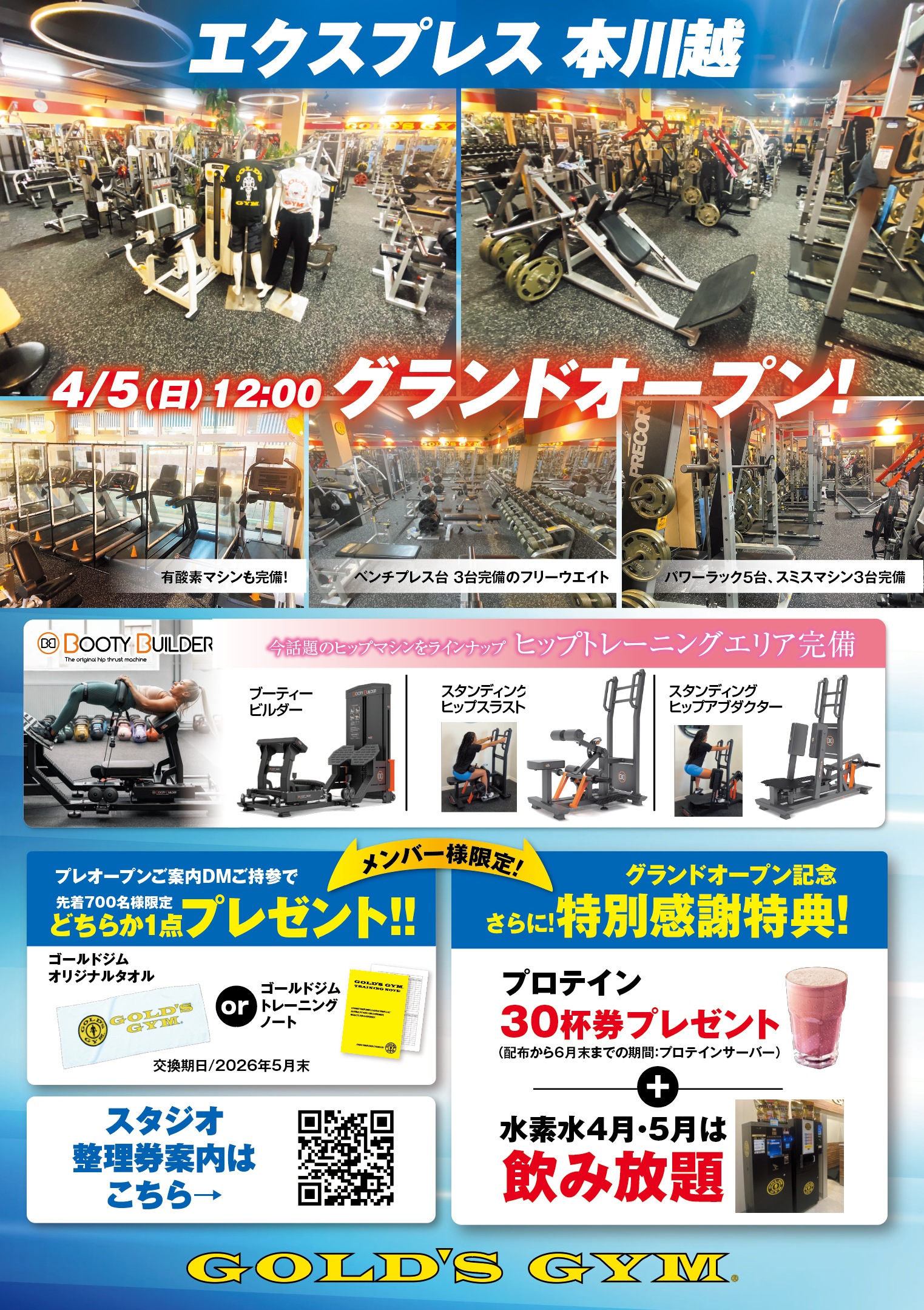 ゴールドジム「エクスプレス本川越店」3月8日12:00より、ジムエリアプレオープン