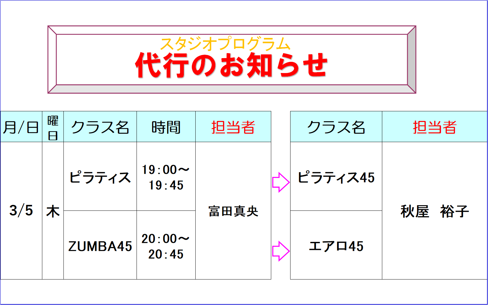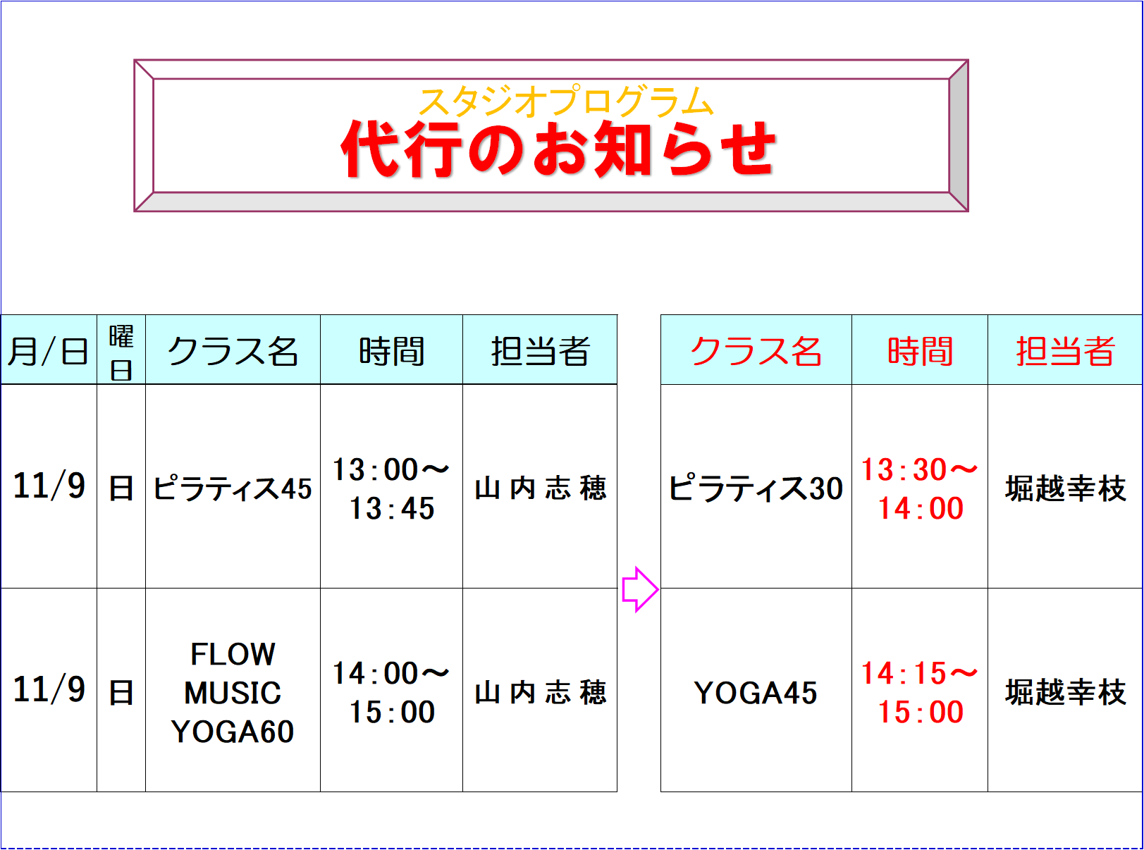 スタジオスケジュール